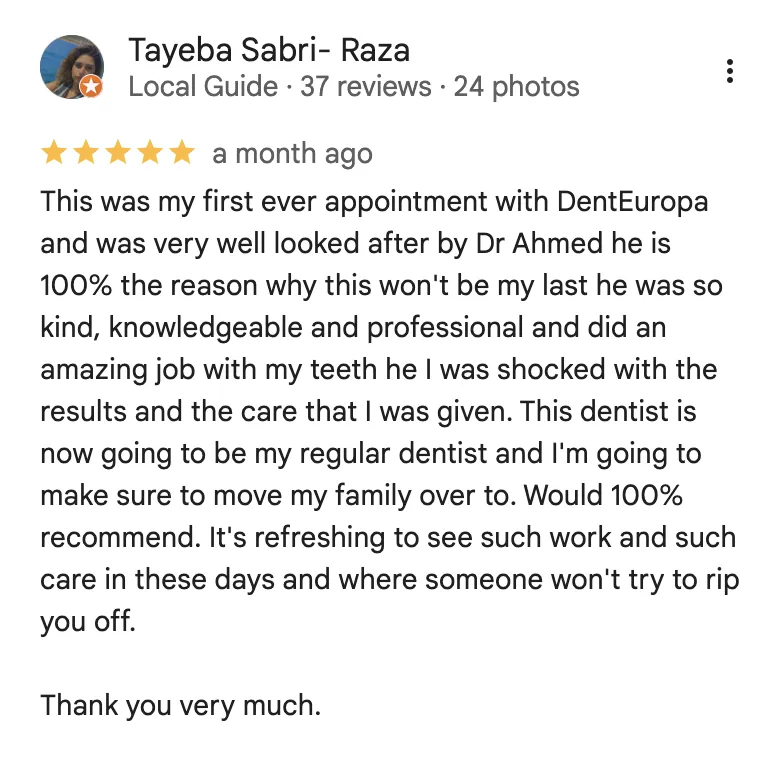 Our clinic have over 225 five-star verified Google Reviews. We make dreams come true by transforming smiles, and that's why our patients love us. Read what some of them have to say about their experience...